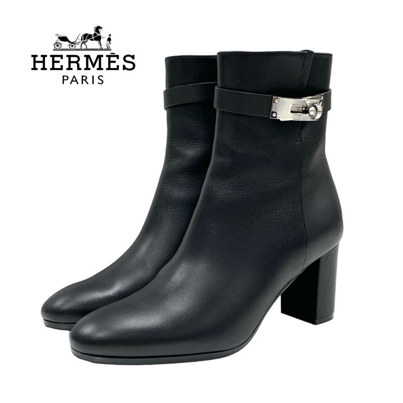 エルメス HERMES サンジェルマン ブーツ ショートブーツ 靴 シューズ レザー ブラック 黒 シルバー ケリー金具