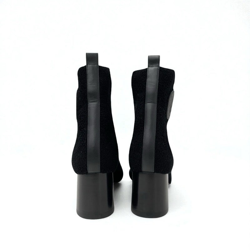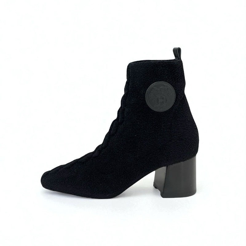 エルメス HERMES ヴォルヴェール ブーツ ショートブーツ 靴 シューズ ニット シュニール レザー ブラック 黒 未使用 エクスリブリス