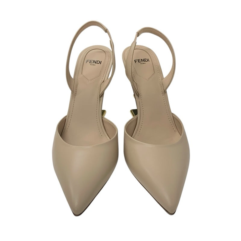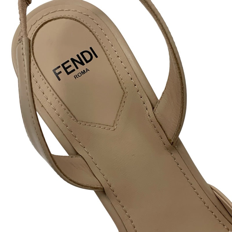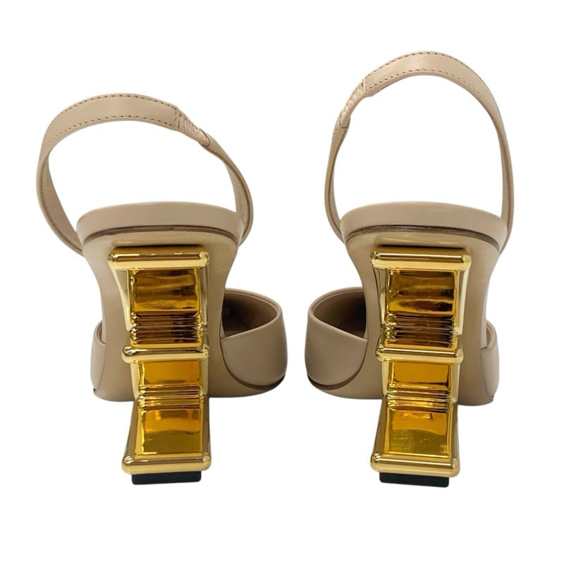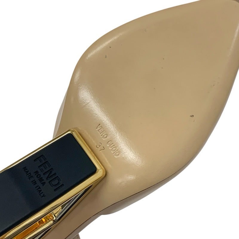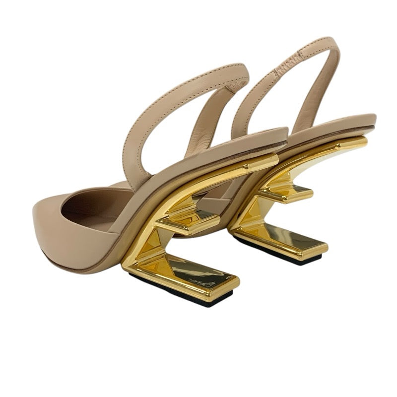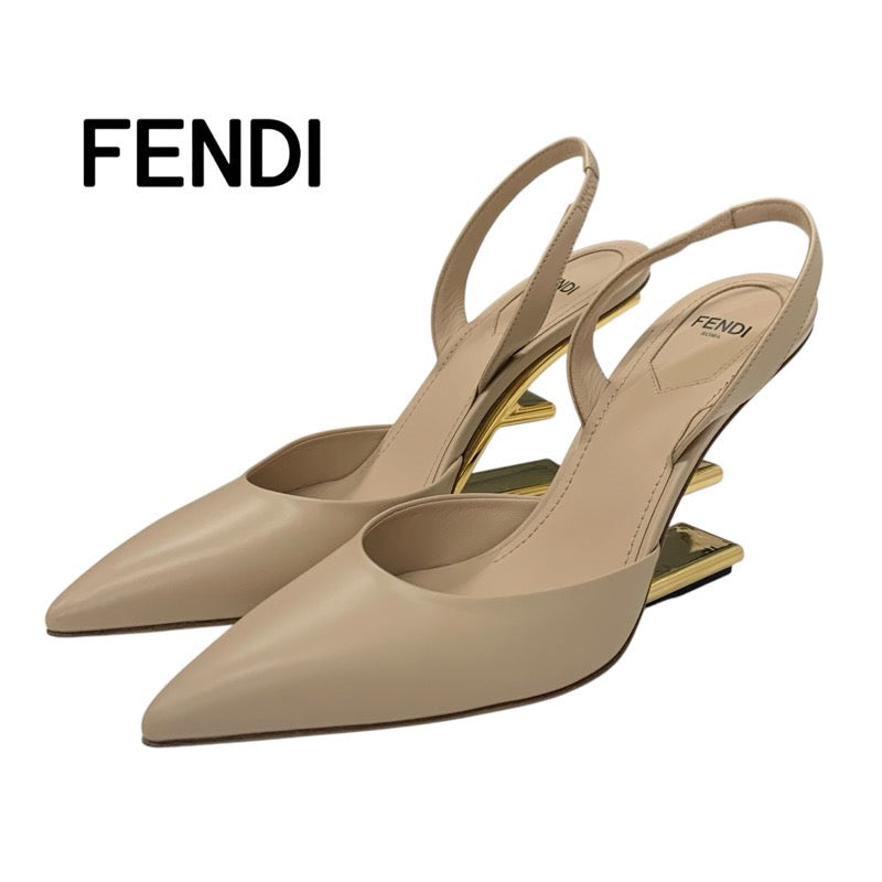 フェンディ FENDI ファースト パンプス 靴 シューズ レザー ピンクベージュ ゴールド スリングバック メタルヒール
