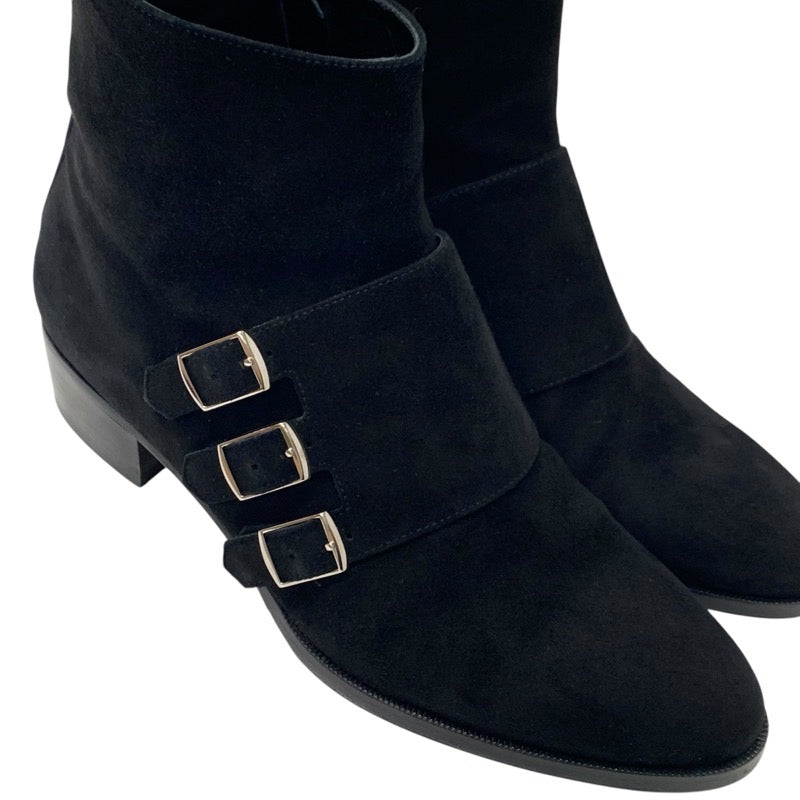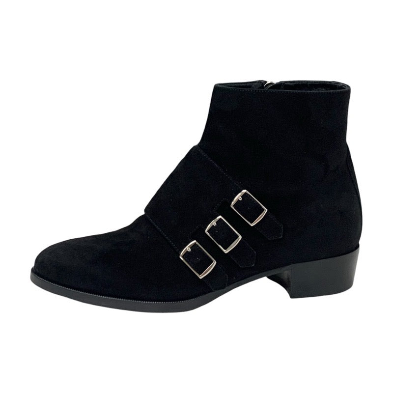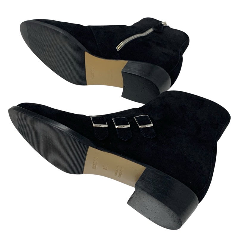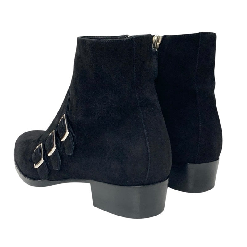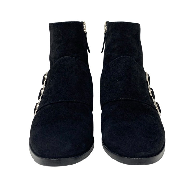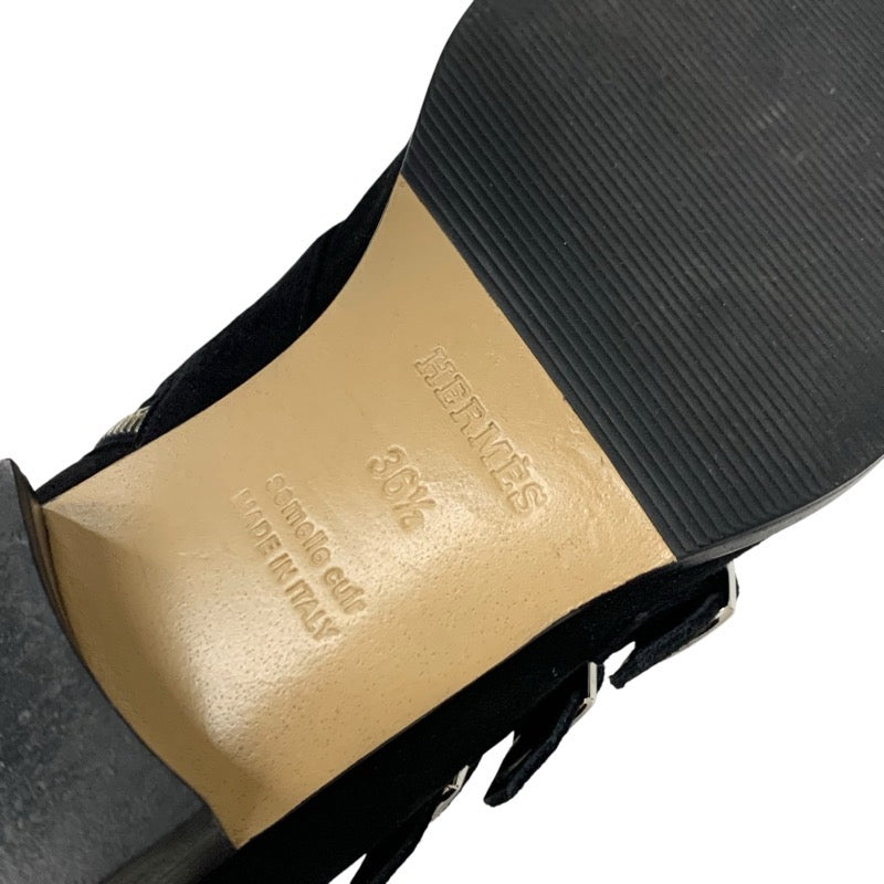 エルメス HERMES ブーツ ショートブーツ 靴 シューズ スエード ブラック 黒 シルバー ベルト