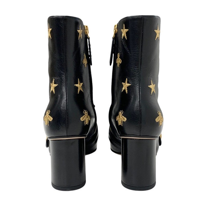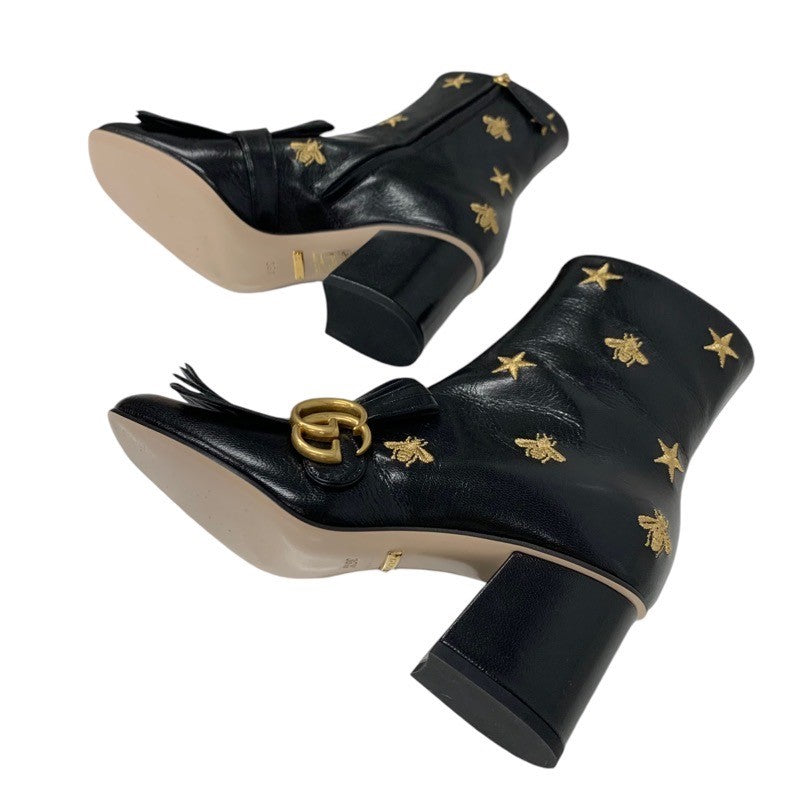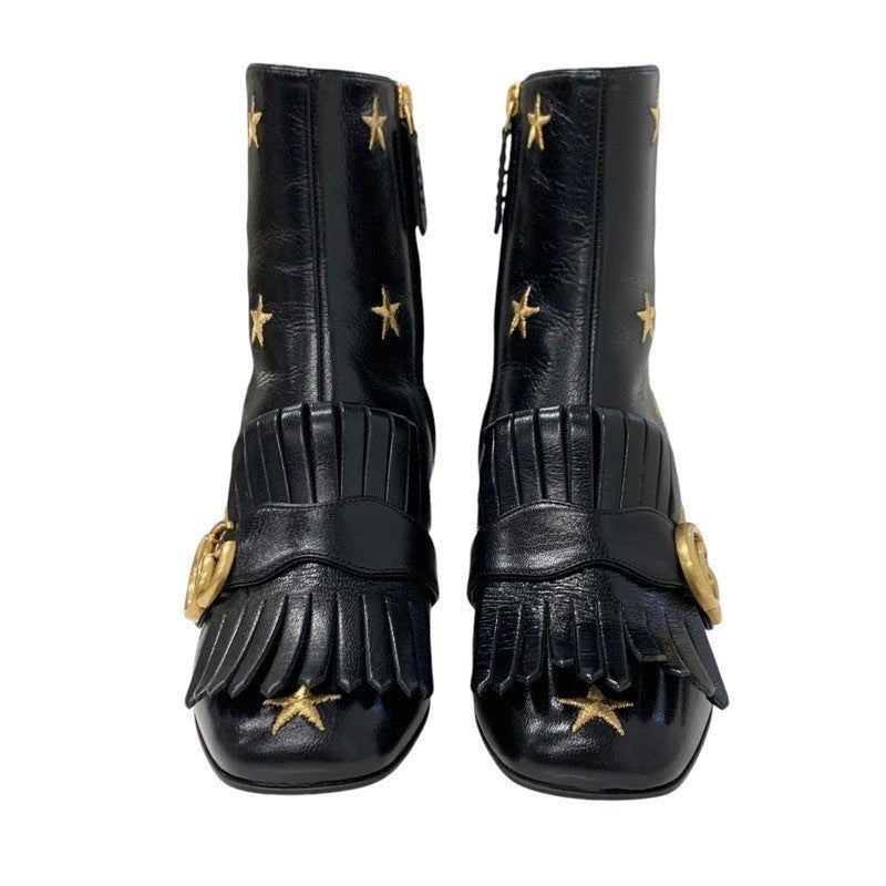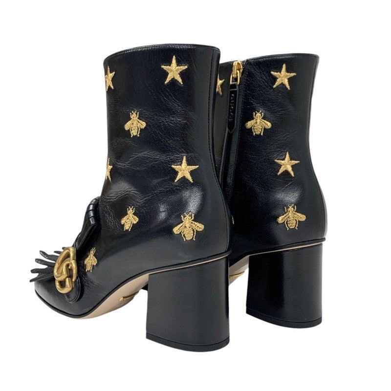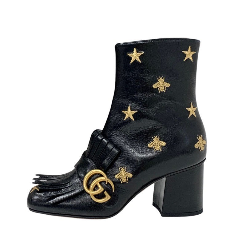 グッチ GUCCI ダブルG ブーツ ショートブーツ 靴 シューズ レザー ブラック ゴールド GGマーモント フリンジ 刺繍 スター bee