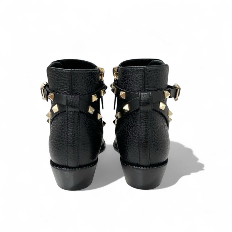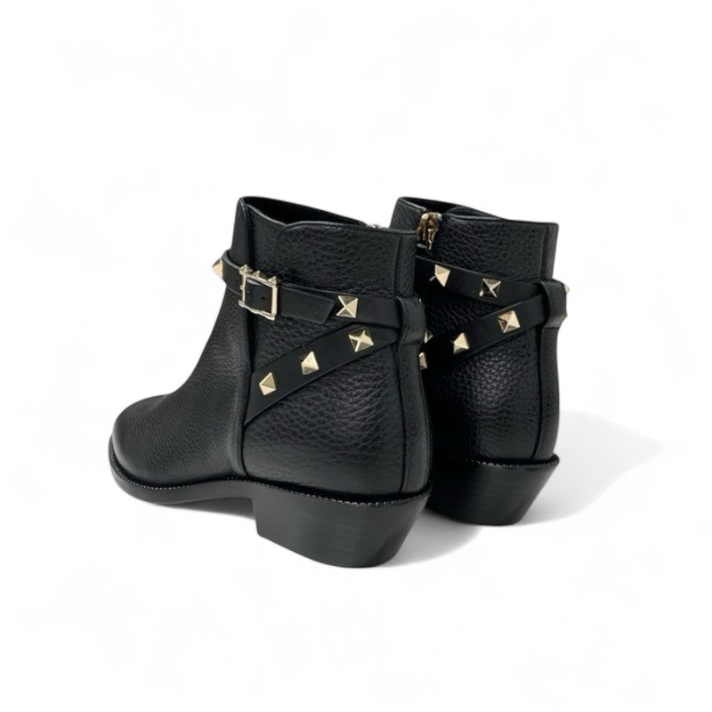 ヴァレンティノ VALENTINO ブーツ ショートブーツ 靴 シューズ レザー ブラック 黒 ゴールド 未使用 ロックスタッズ ベルト