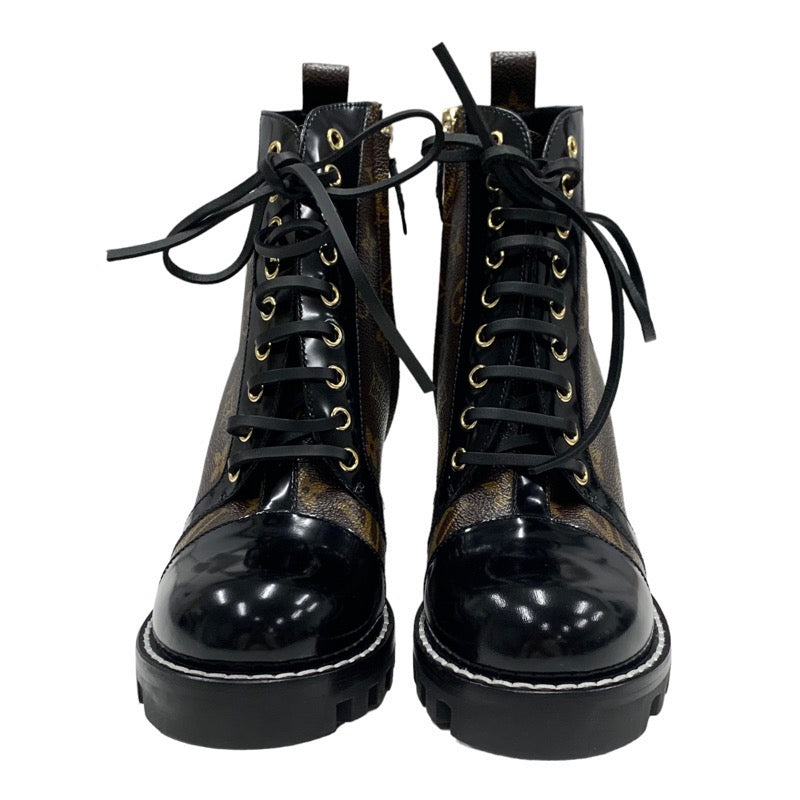 ルイヴィトン LOUIS VUITTON スタートレイル モノグラム ブーツ ショートブーツ アンクルブーツ レースアップ レザー ブラウン ブラック