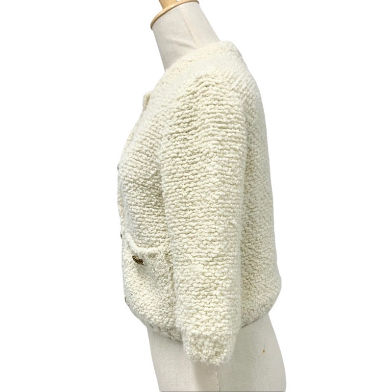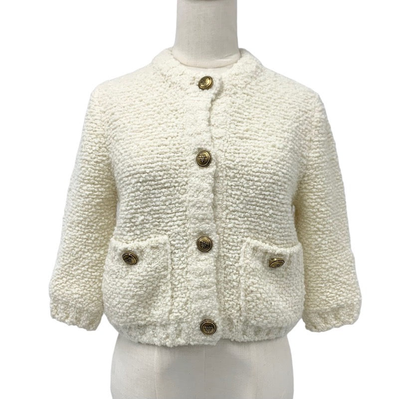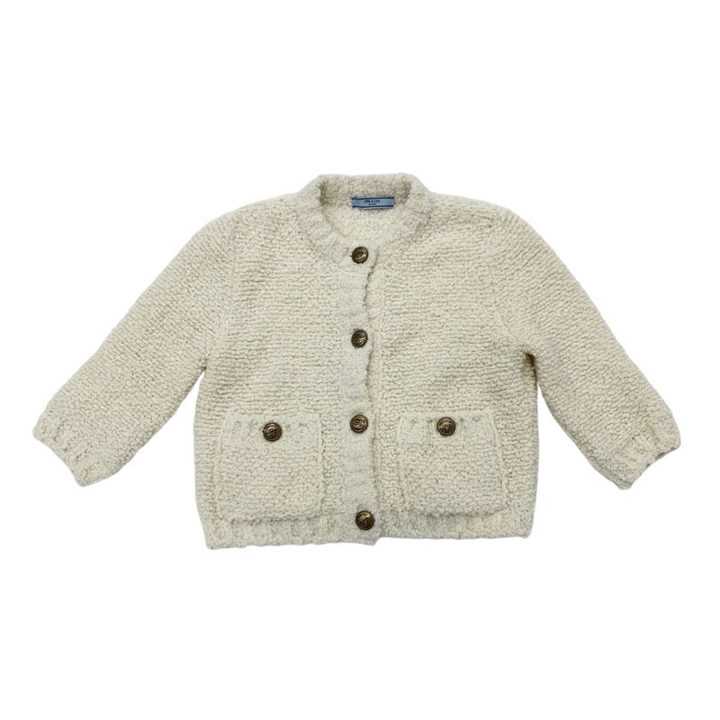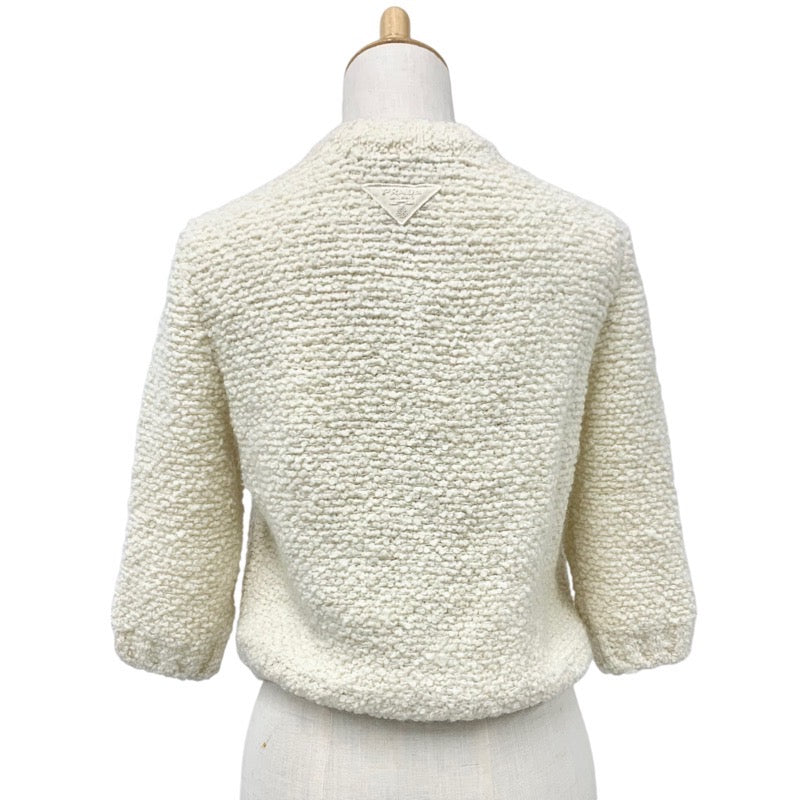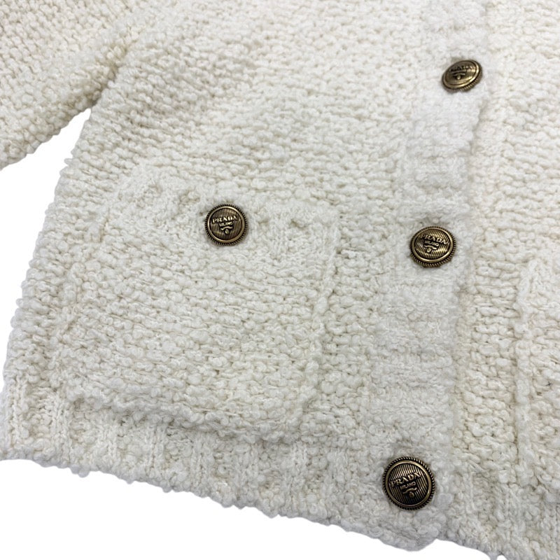 プラダ PRADA トップス ホワイト ゴールド ブークレモヘア カーディガン ロゴ ニット
