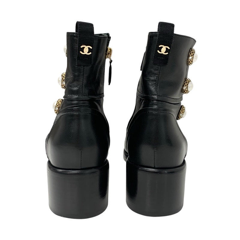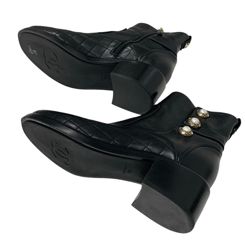 シャネル CHANEL ブーツ ショートブーツ 靴 シューズ レザー ブラック 黒 マトラッセ ココマーク パール ビジュー ボタン