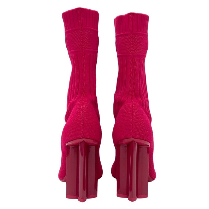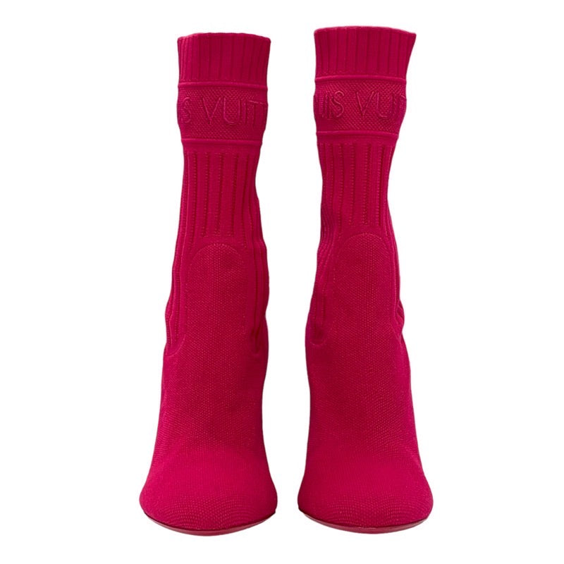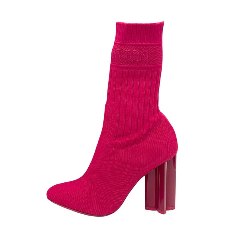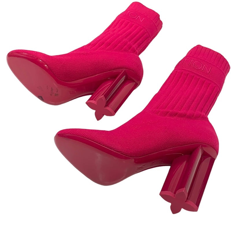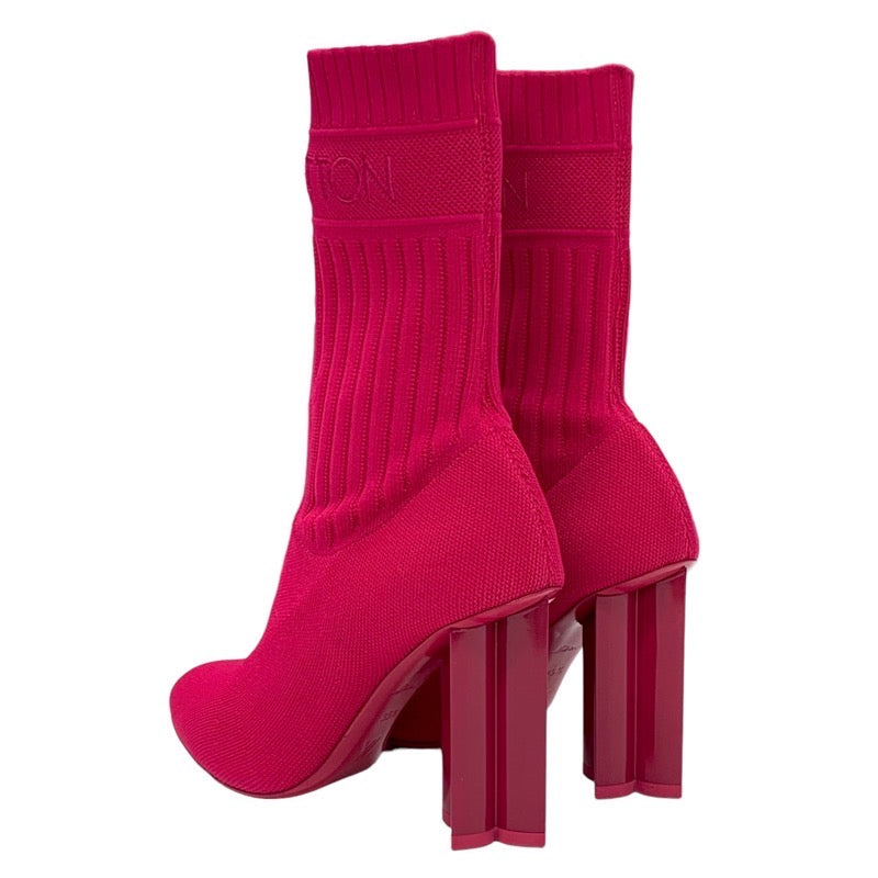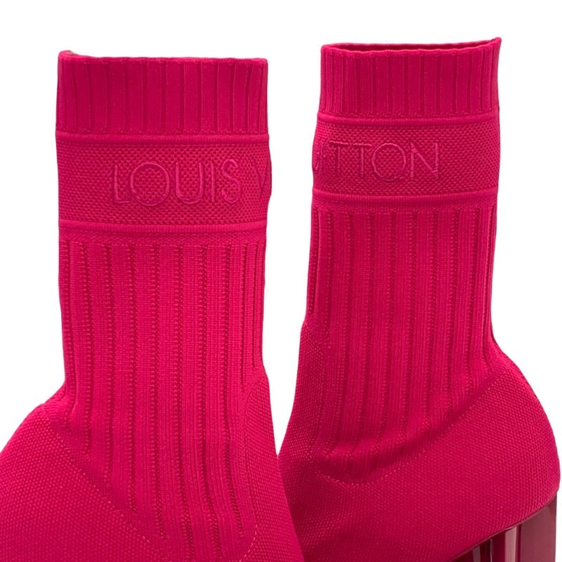 未使用 ルイヴィトン LOUIS VUITTON シルエットライン ブーツ ショートブーツ アンクルブーツ ソックスブーツ ロゴ ニット ピンク