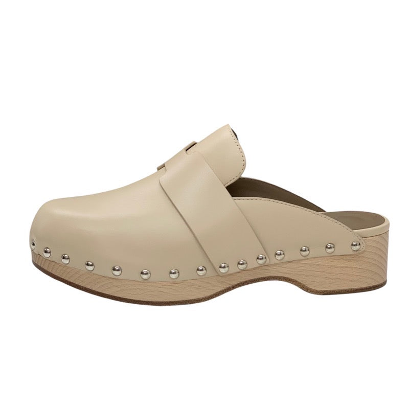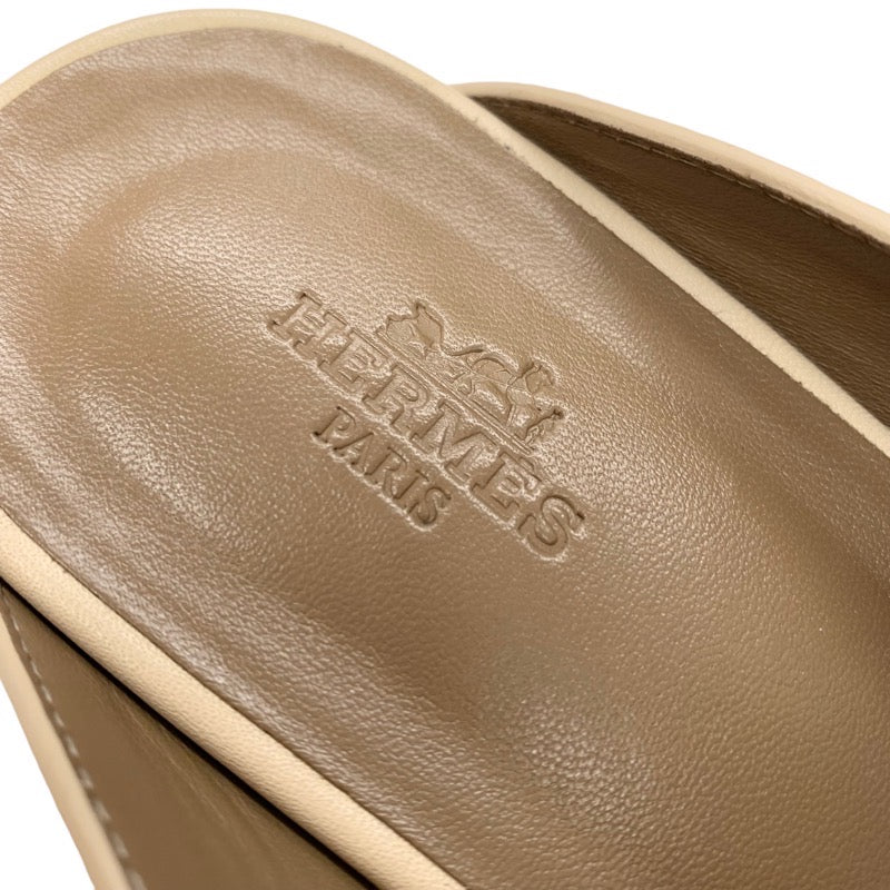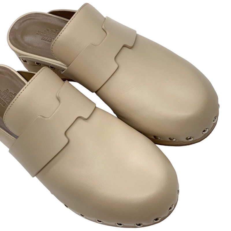 エルメス HERMES カリャ サンダル ミュール 靴 シューズ スタッズ レザー ウッド ベージュ