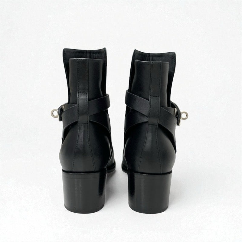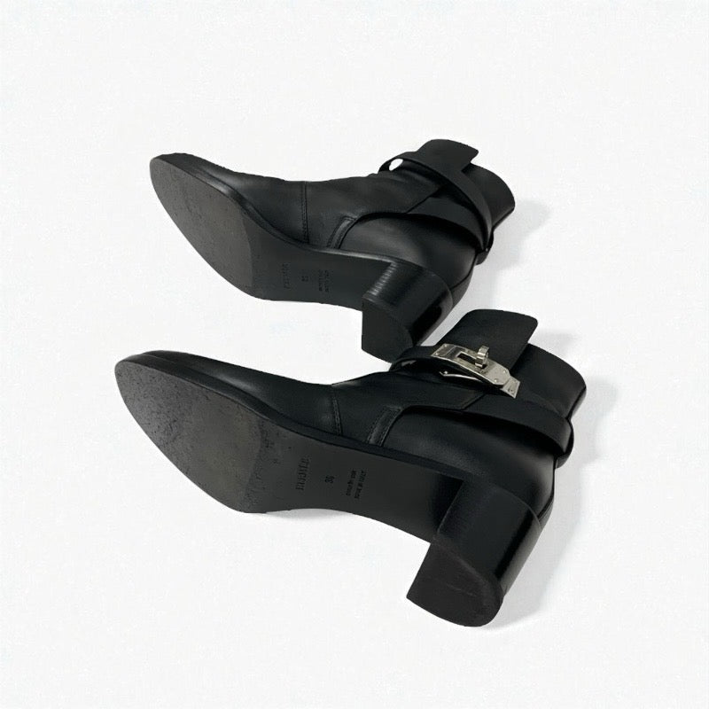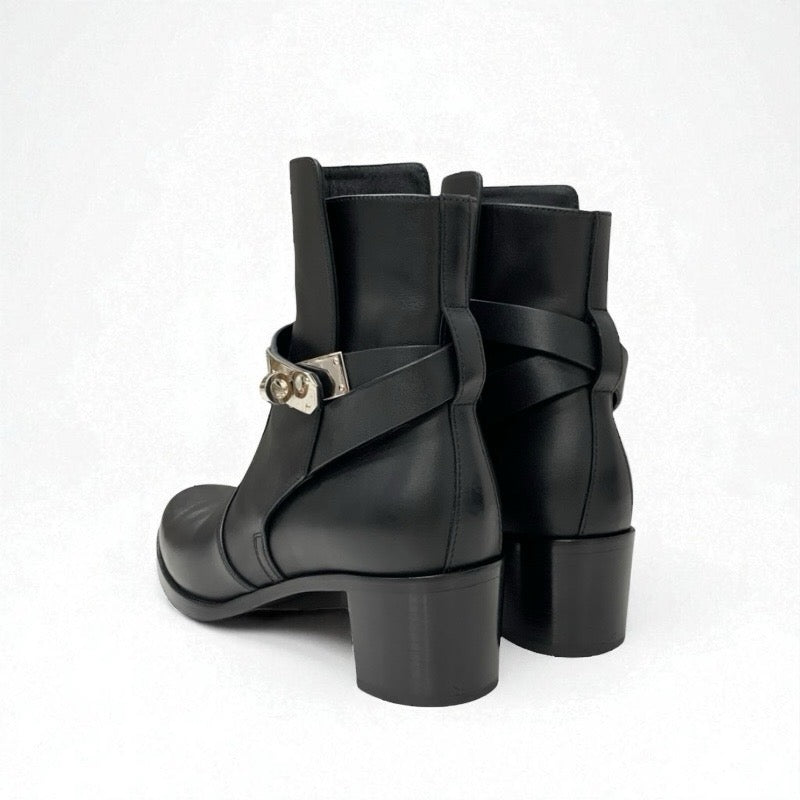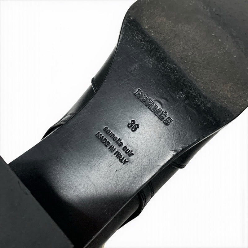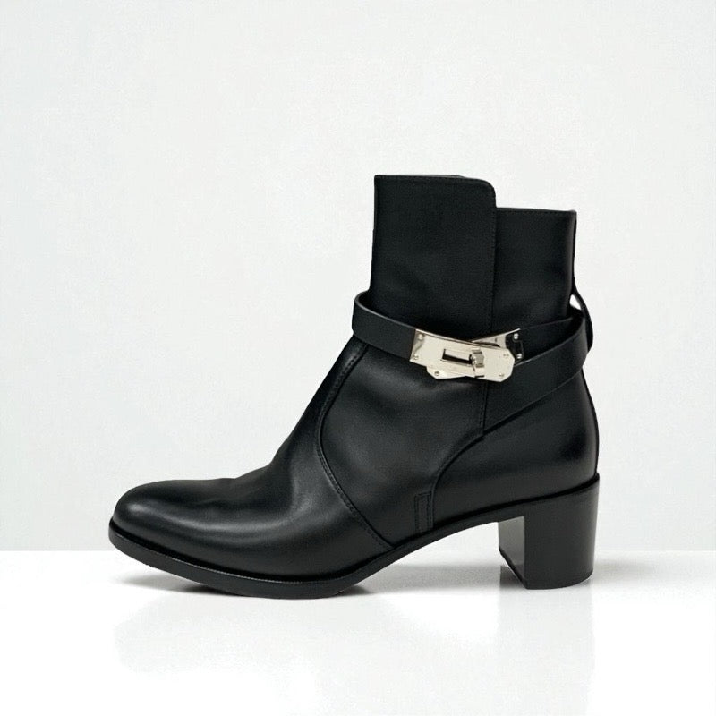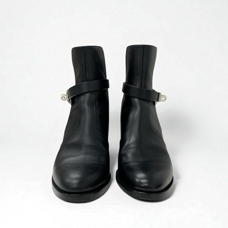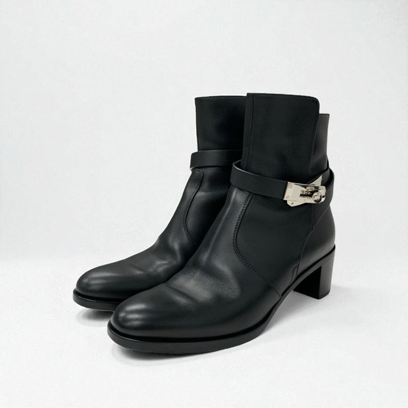 エルメス HERMES フレンチー ブーツ ショートブーツ 靴 シューズ レザー ブラック 黒 シルバー ケリー金具
