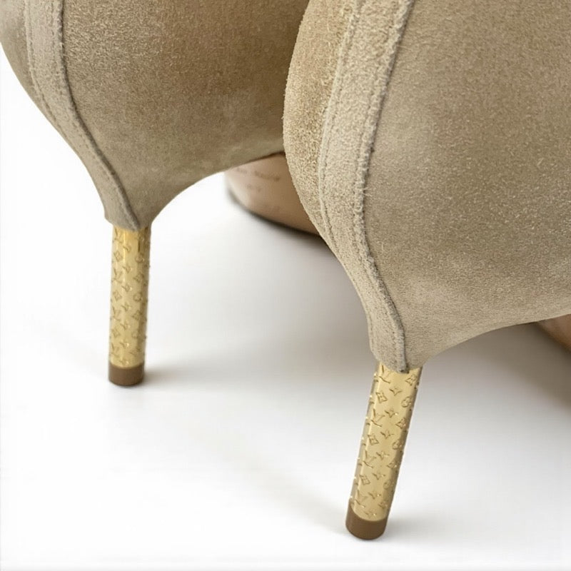ルイヴィトン LOUIS VUITTON アルティメートライン ブーツ ショートブーツ 靴 シューズ スエード ベージュ ゴールド アンクルブーツ モノグラムヒール