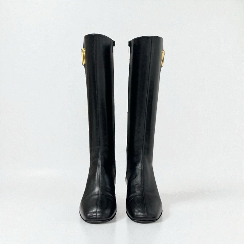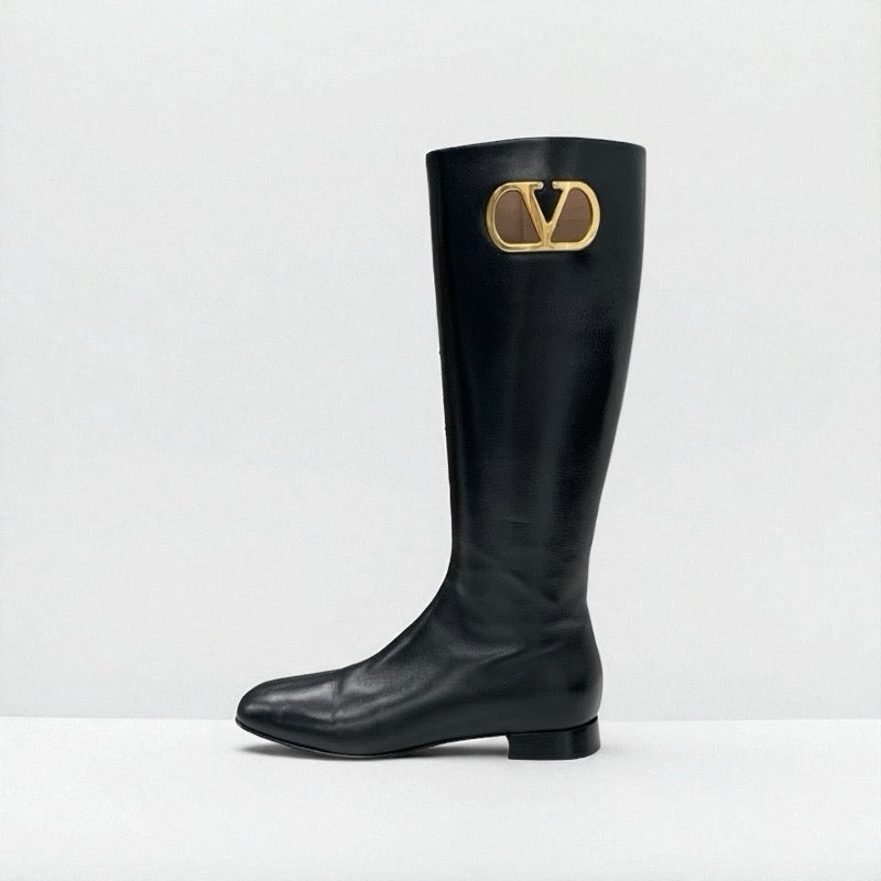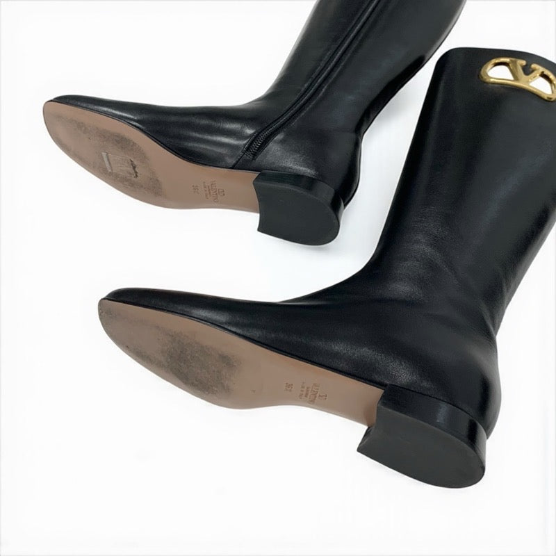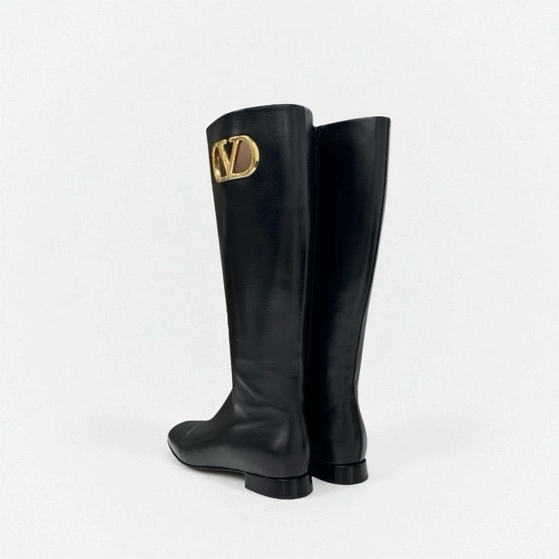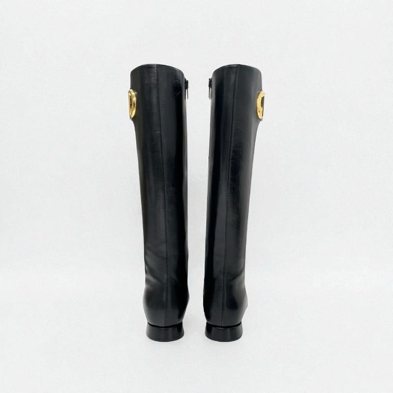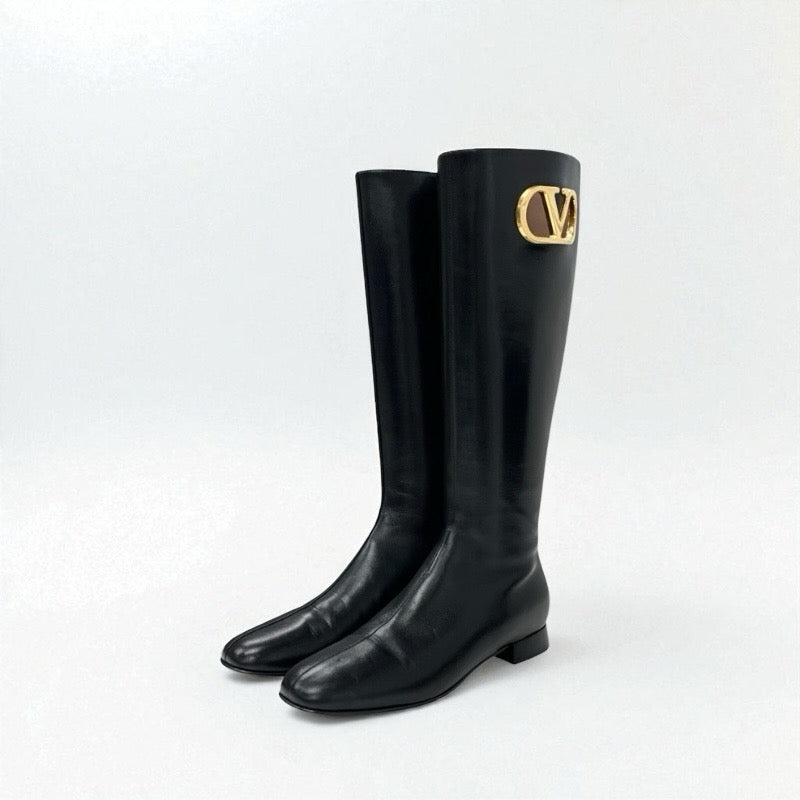 ヴァレンティノ VALENTINO ブーツ ロングブーツ 靴 シューズ レザー ブラック ゴールド Vロゴ シグネチャー キッズスキン