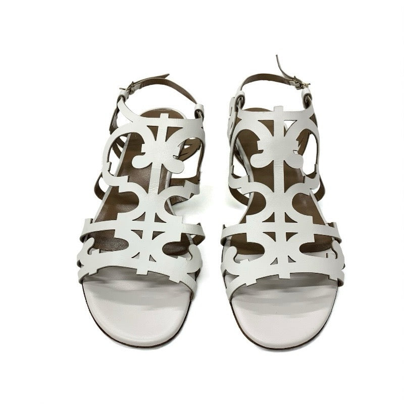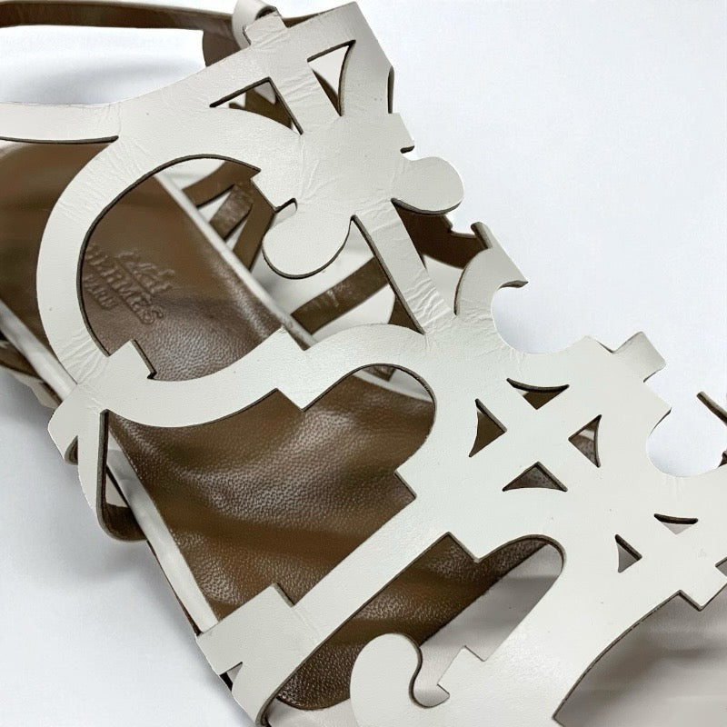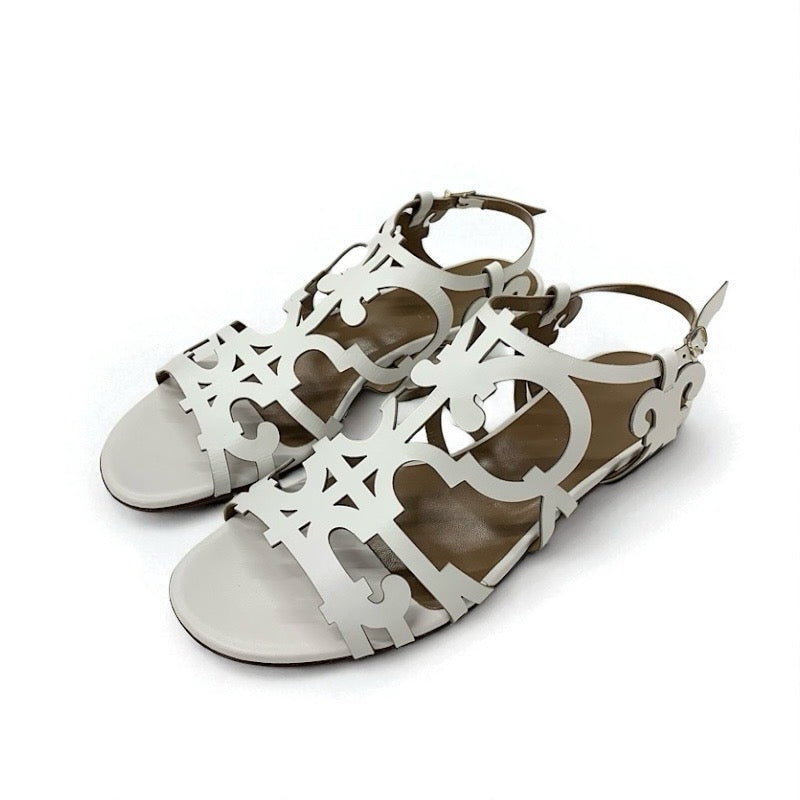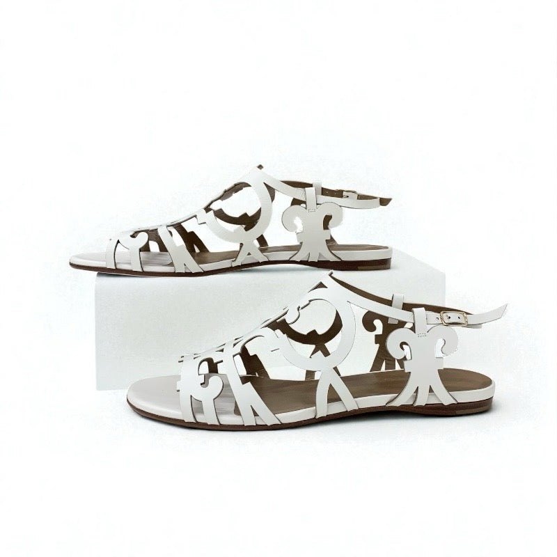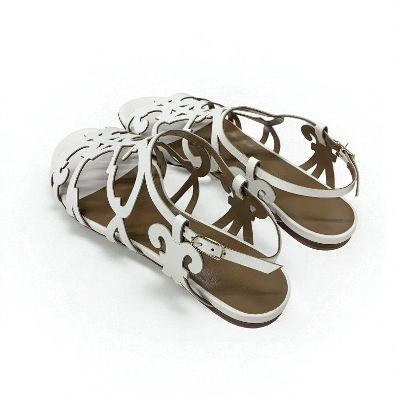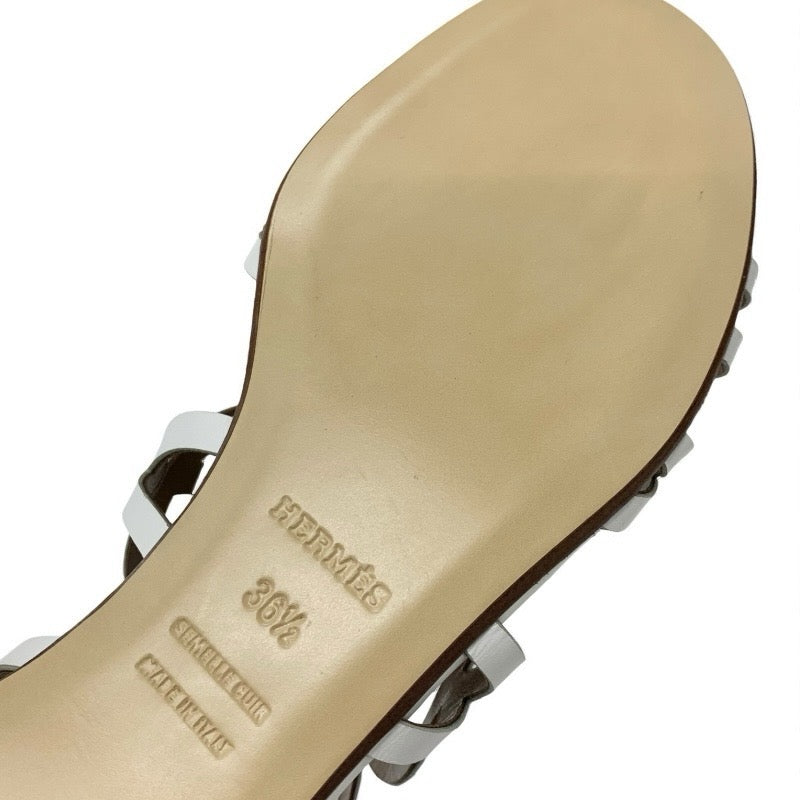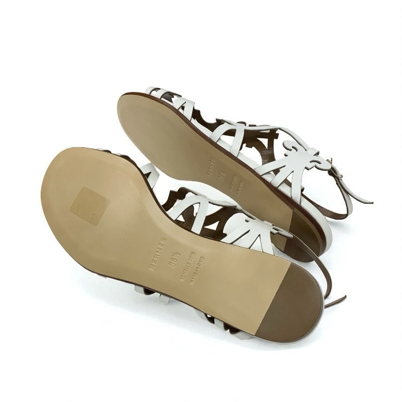 エルメス HERMES サンダル 靴 シューズ レザー ホワイト 白 ガダルキヴィール ストラップ フラット
