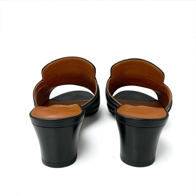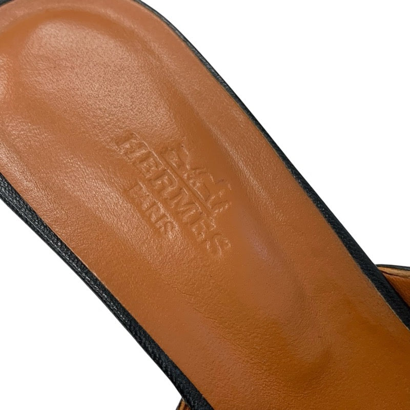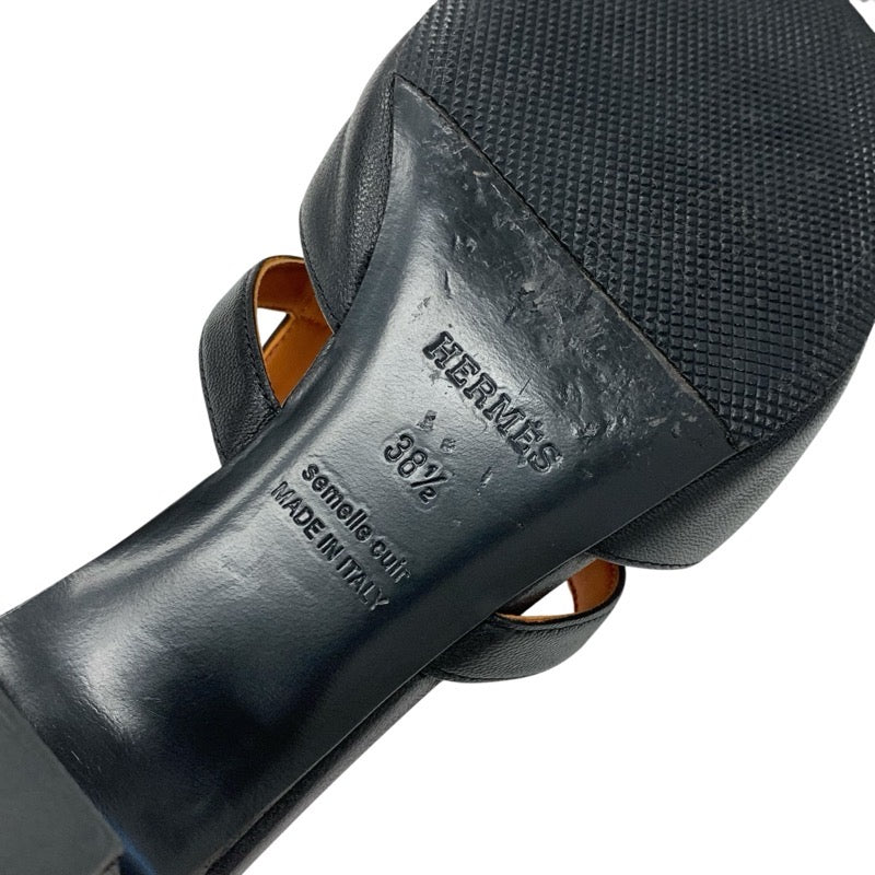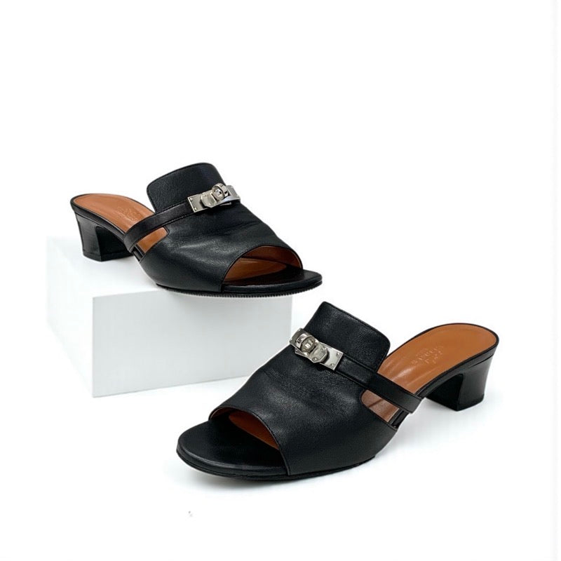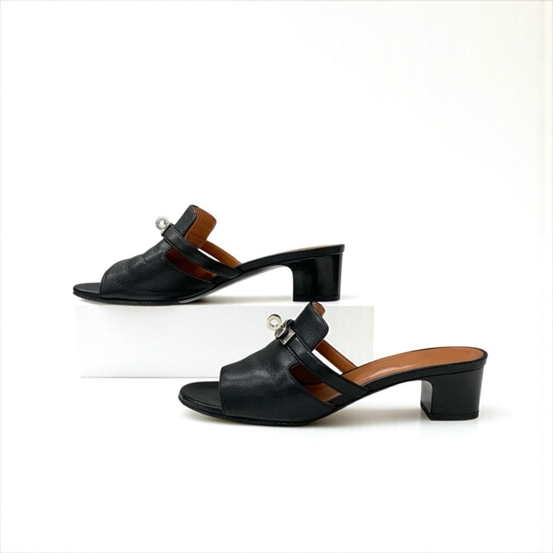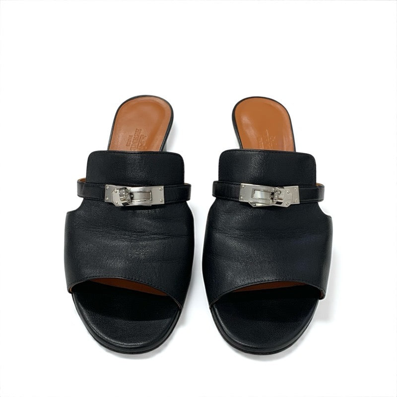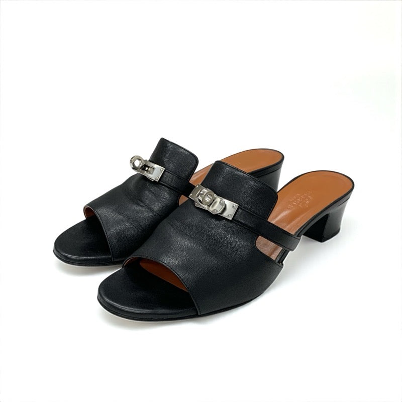 エルメス HERMES キャンディ サンダル 靴 シューズ レザー ブラック 黒 シルバー ケリー金具 ミュール
