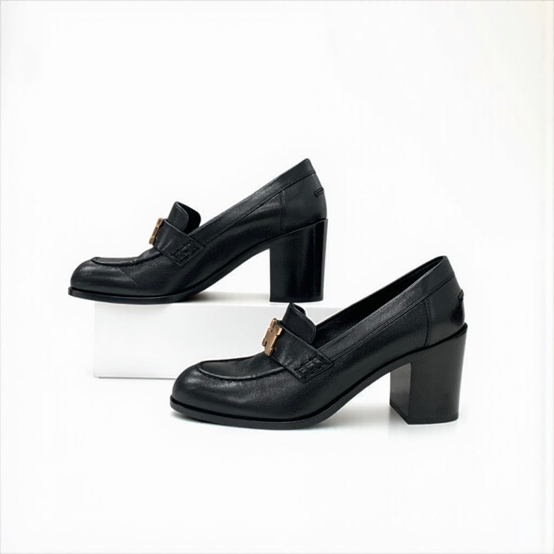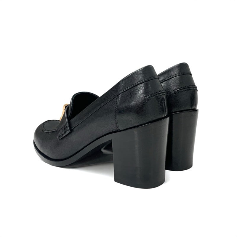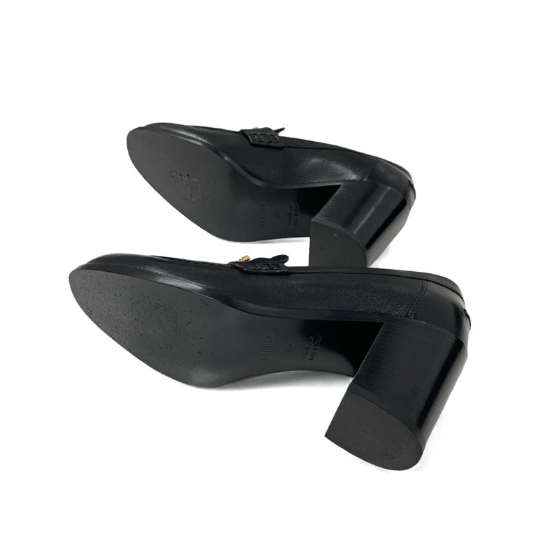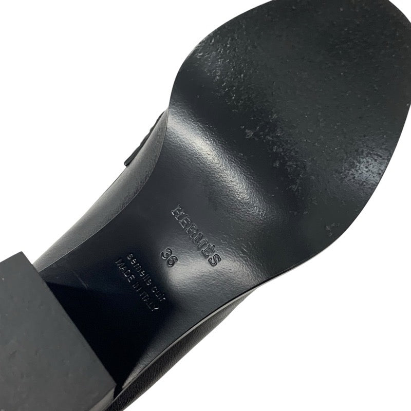 エルメス HERMES ドーフィン ローファー 革靴 靴 シューズ レザー ブラック 黒 ピンクゴールド H金具 ヒールローファー