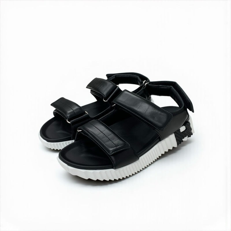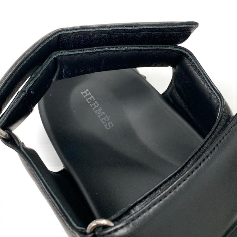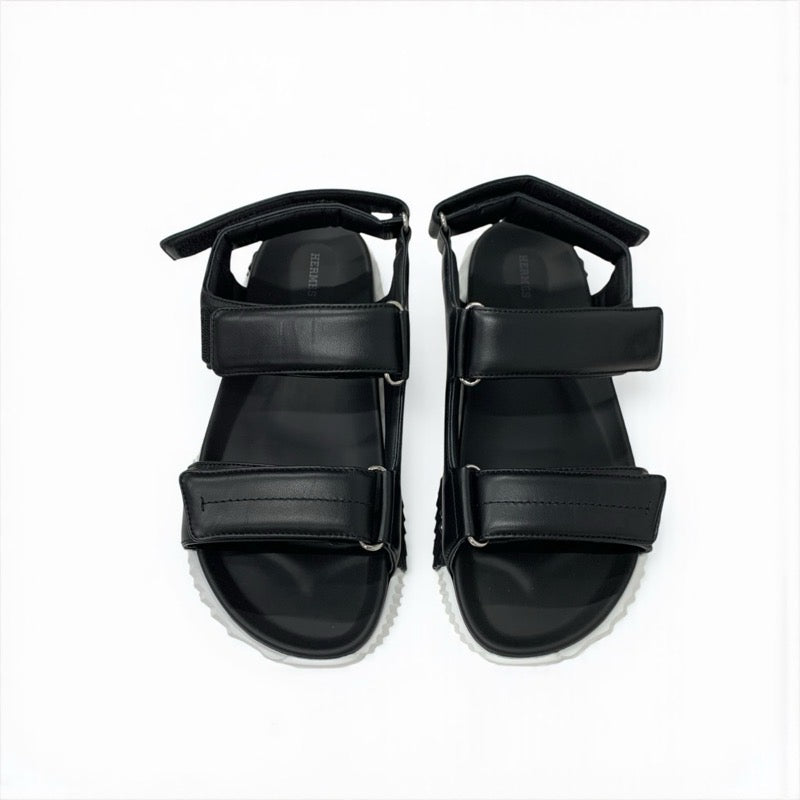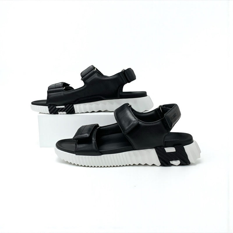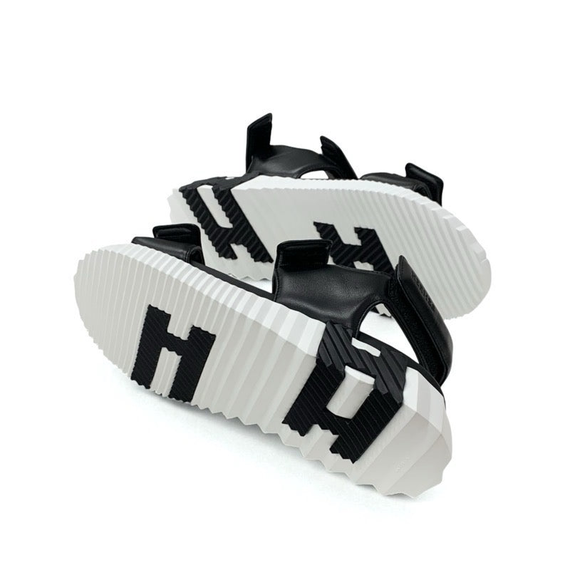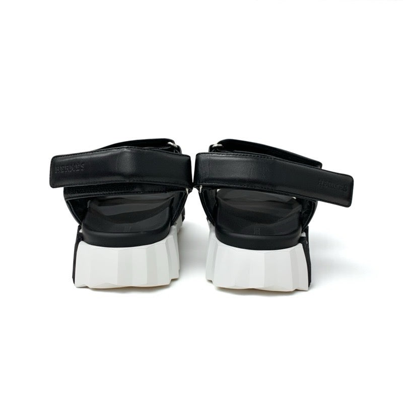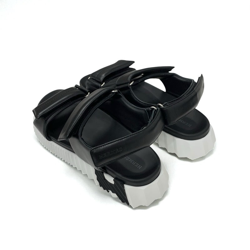 エルメス HERMES ジュニア サンダル 靴 シューズ レザー ブラック ホワイト ロゴ ベルクロ メンズ