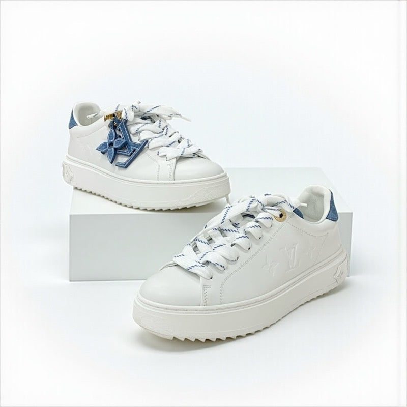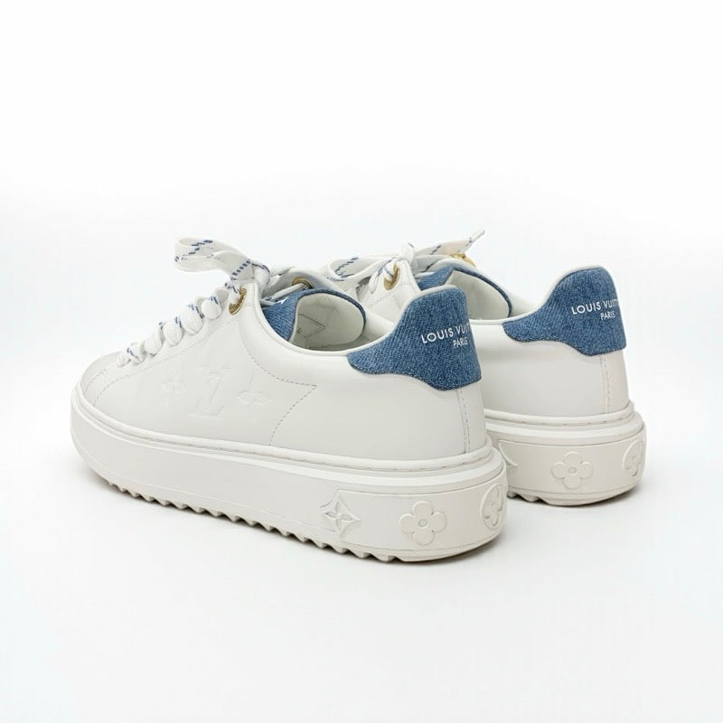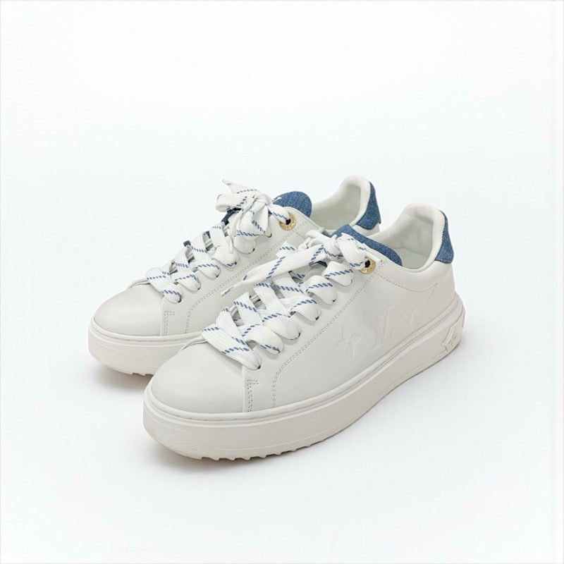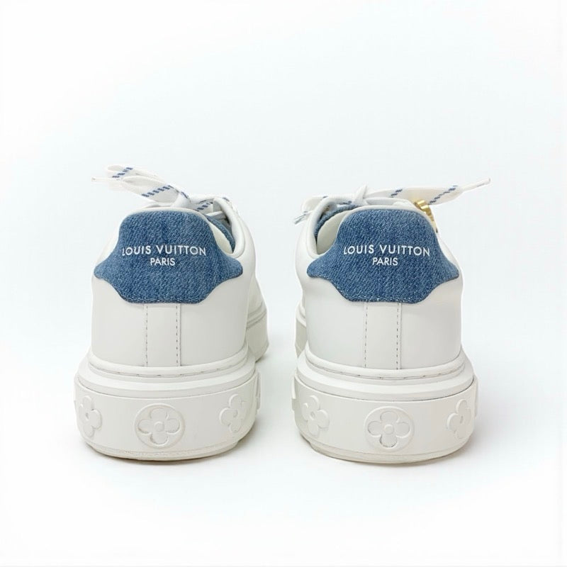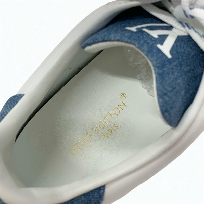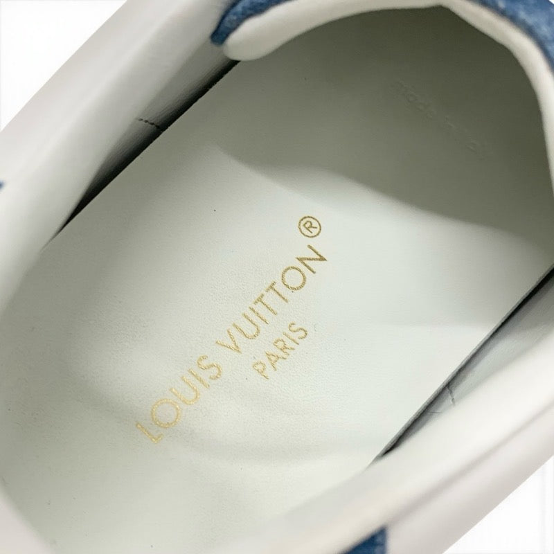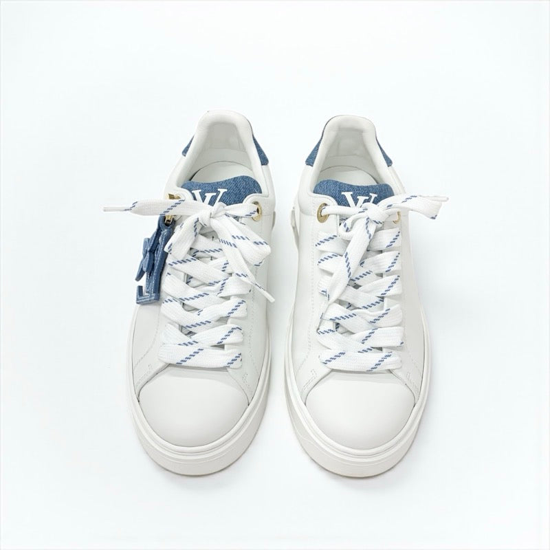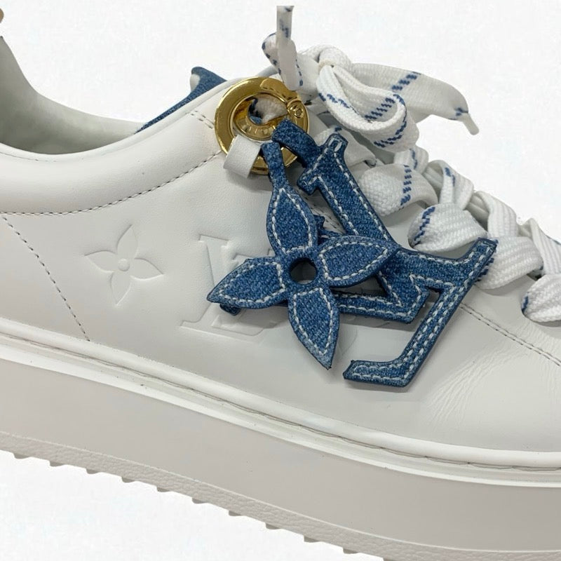 ルイヴィトン LOUIS VUITTON タイムアウトライン モノグラム スニーカー 靴 シューズ レザー デニム ホワイト ブルー ロゴ チャーム