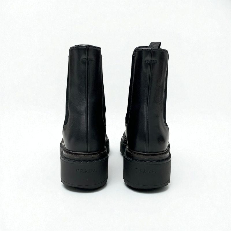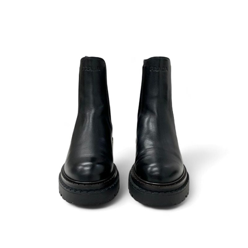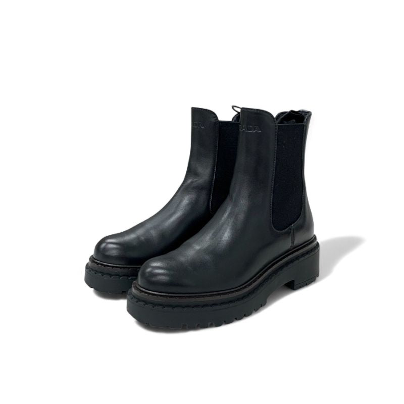 プラダ PRADA ブーツ ショートブーツ 靴 シューズ レザー ブラック 黒 ロゴ サイドゴア チェルシーブーツ