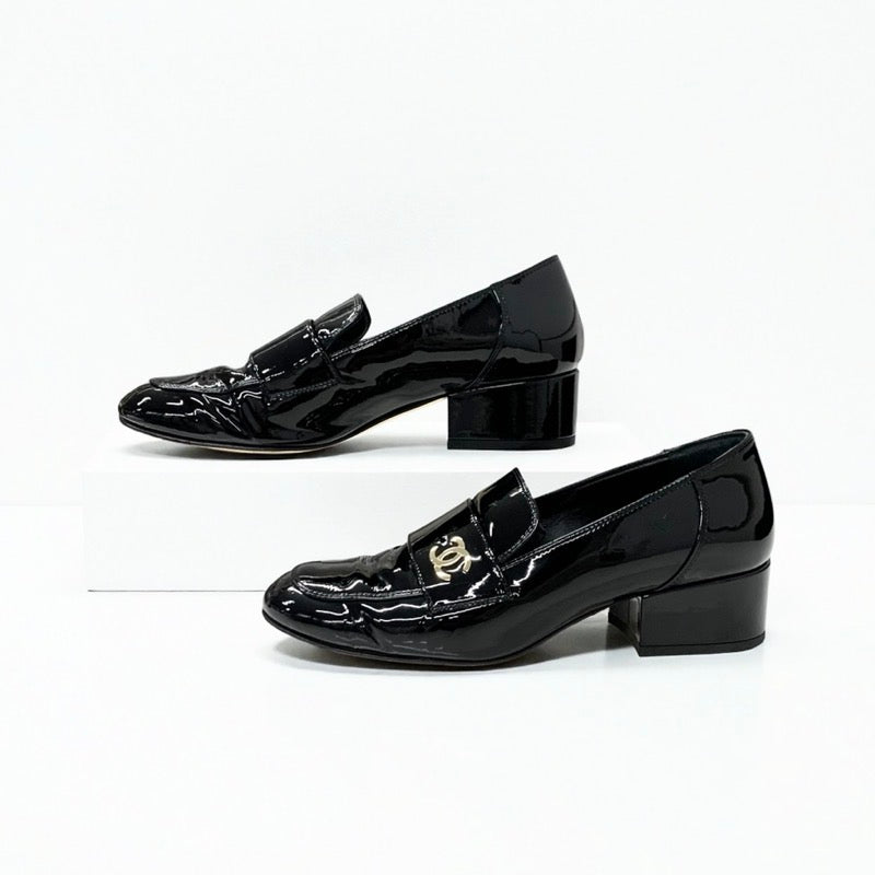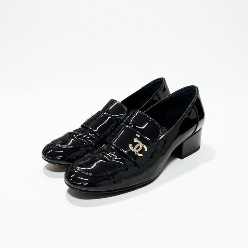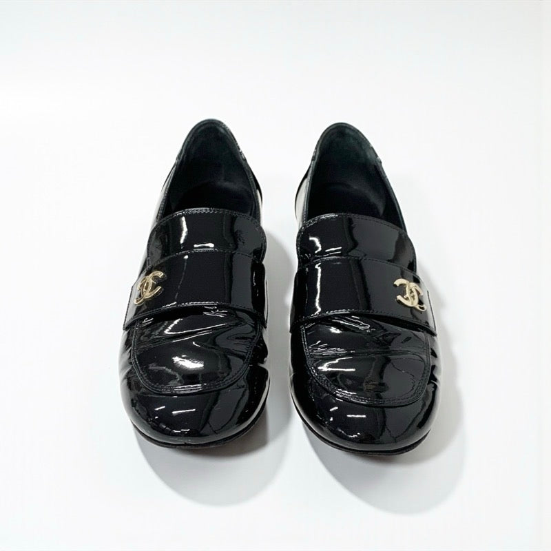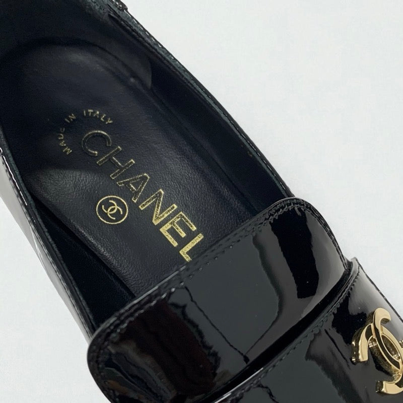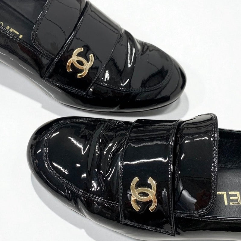 シャネル CHANEL ローファー 革靴 靴 シューズ パテントレザー ブラック ゴールド ココマーク