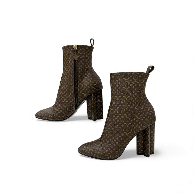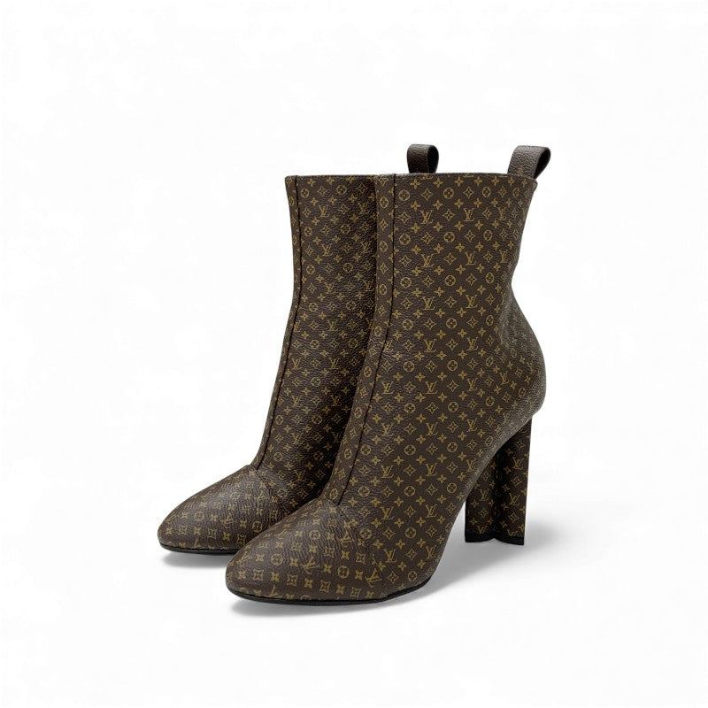 ルイヴィトン LOUIS VUITTON シルエットライン モノグラム ブーツ ショートブーツ 靴 シューズ レザー ブラウン アンクルブーツ