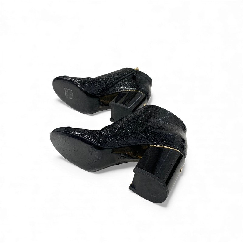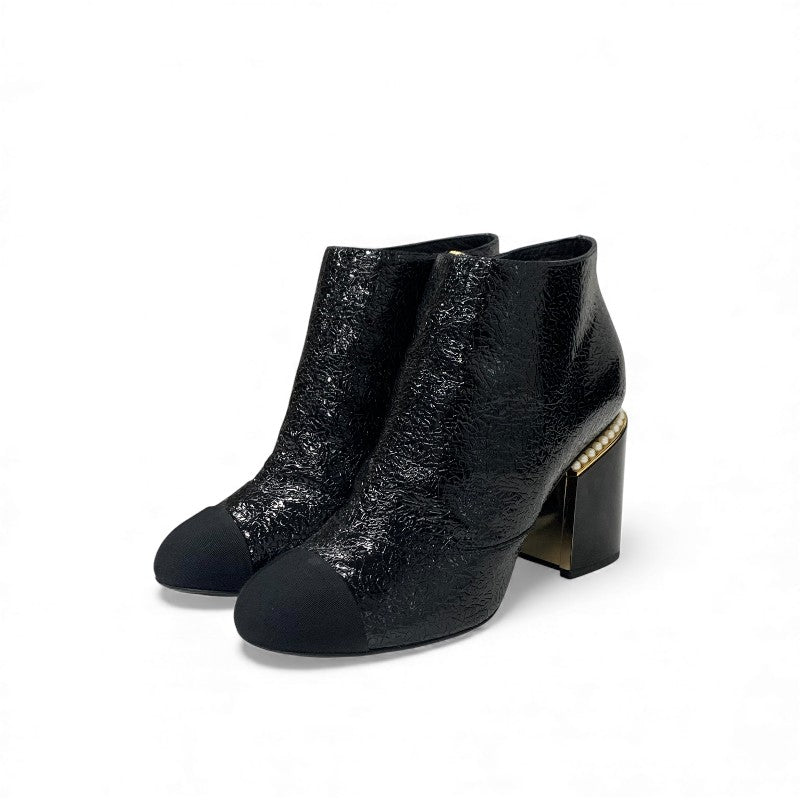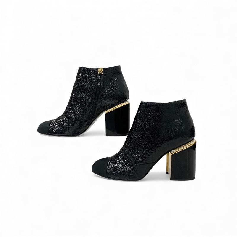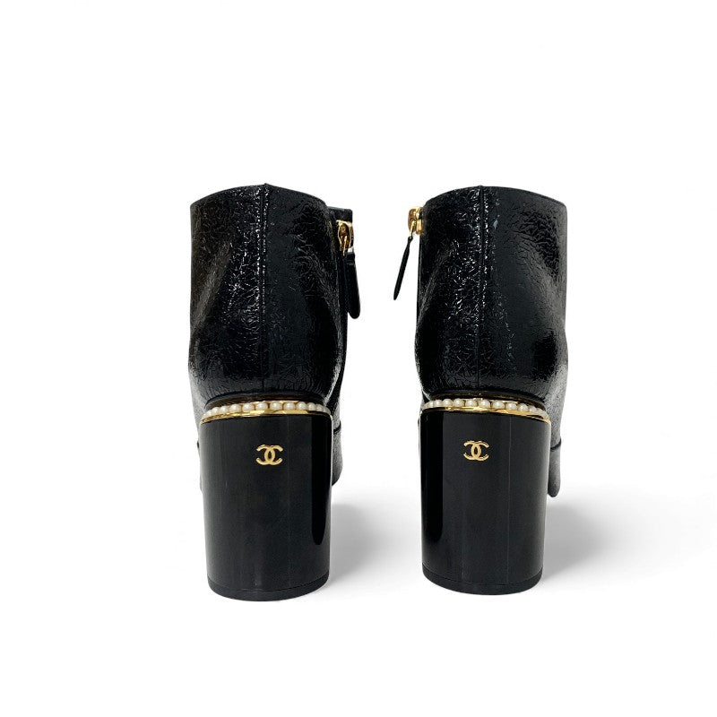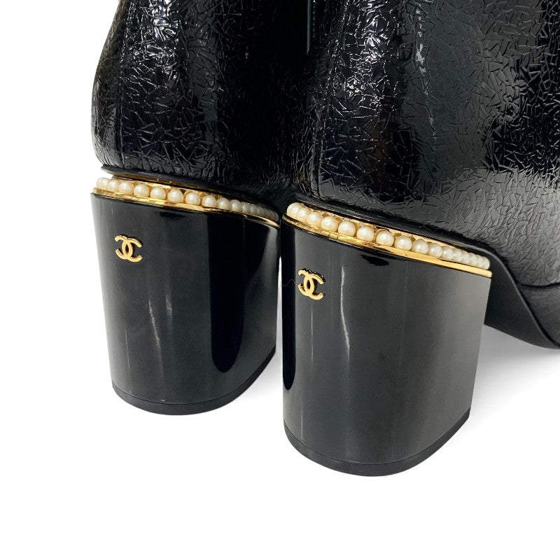 シャネル CHANEL ブーツ ショートブーツ 靴 シューズ レザー ファブリック ブラック 黒 ゴールド ココマーク パール